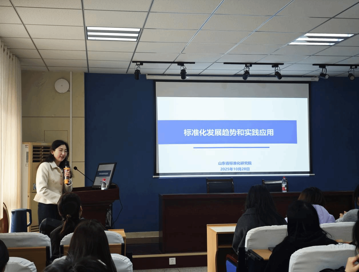 为深化标准化工程专业学生对专业领域的认知,助力其把握行业发展新脉搏、提升理论结合实践能力,太阳成集团tyc122cc于 2025 年 10 月 28 日特别邀请山东省标准化研究院乡村振兴标准化研究所所长李倩博士,开展专题讲座,讲座由系主任代婷老师主持。李倩博士围绕标准化主题,从发展趋势、政策导向及应用实践案例等维度,全面解读标准化在国家发展、社会生活及各行业中的重要价值与实践路径,为在场师生带来一场兼具专业性与实用性的知识盛宴。